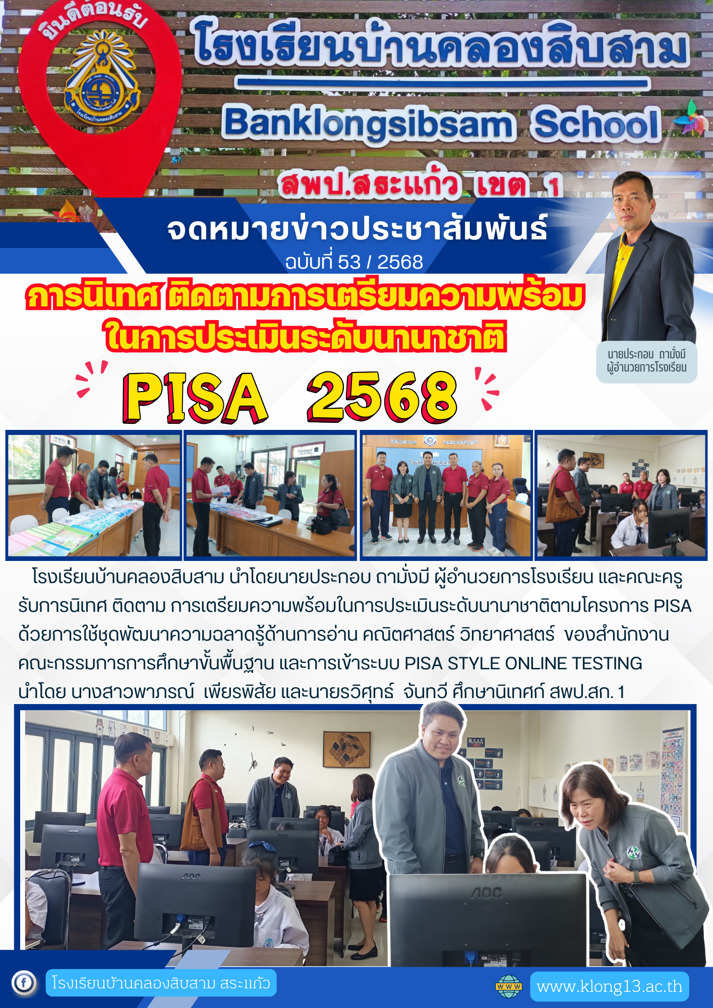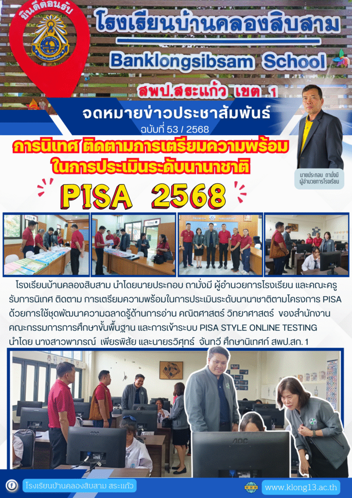 การนิเทศ ติดตามการเตรียมความพร้อม ในการประเมินระดับนานาชาติ PISA