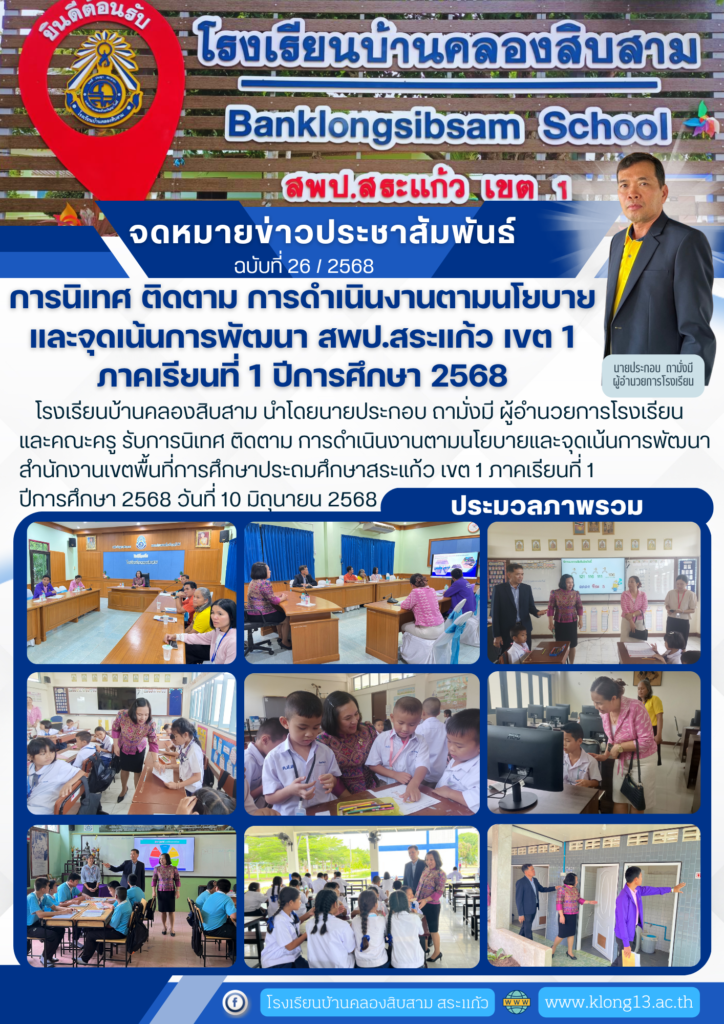 การนิเทศ ติดตาม การดำเนินงานตามนโยบายและจุดเน้นการพัฒนา สพป.สระแก้ว เขต 1 ภาคเรียนที่ 1 ปีการศึกษา 2568