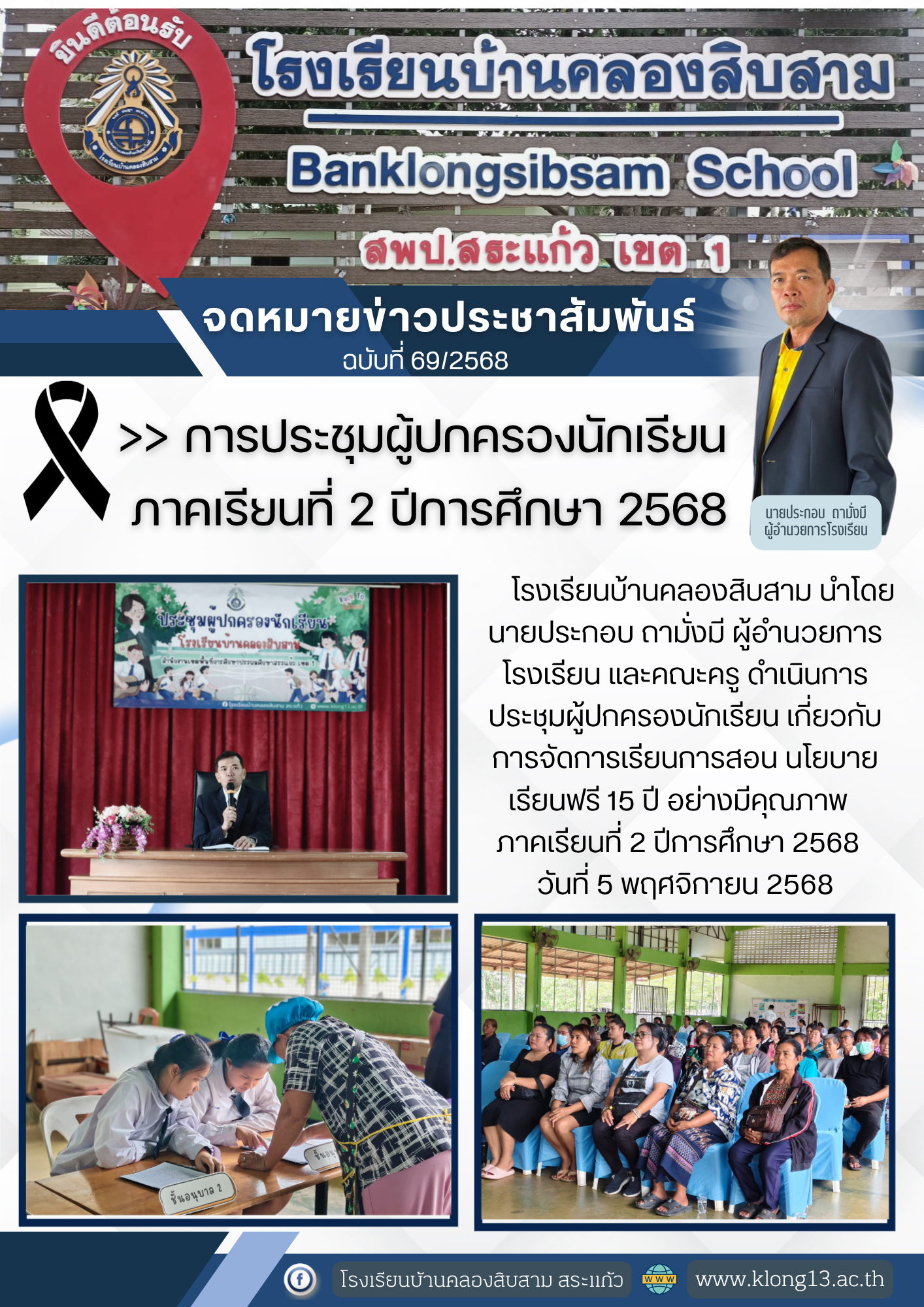 การประชุมผู้ปกครองนักเรียน ภาคเรียนที่ 2 ปีการศึกษา 2568