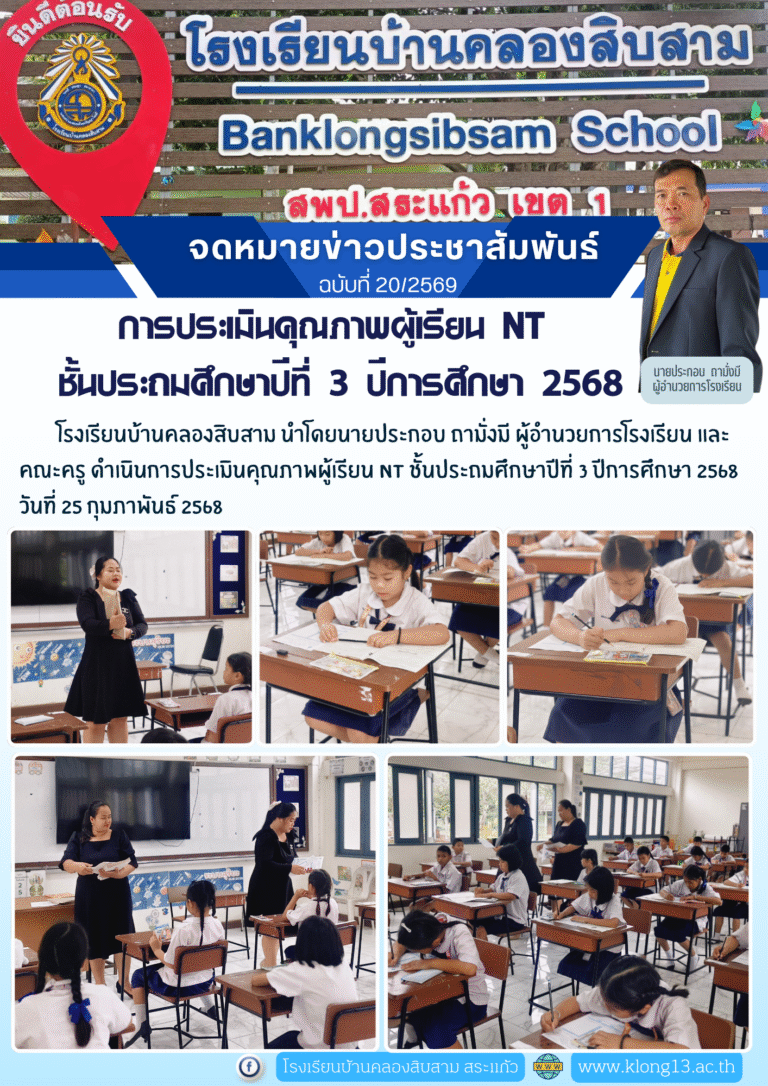 งานประชาสัมพันธ์ การประเมินคุณภาพผู้เรียน NT ชั้นประถมศึกษาปีที่ 3 ปีการศึกษา 2568มีนาคม 9, 2026มีนาคม 9, 2026