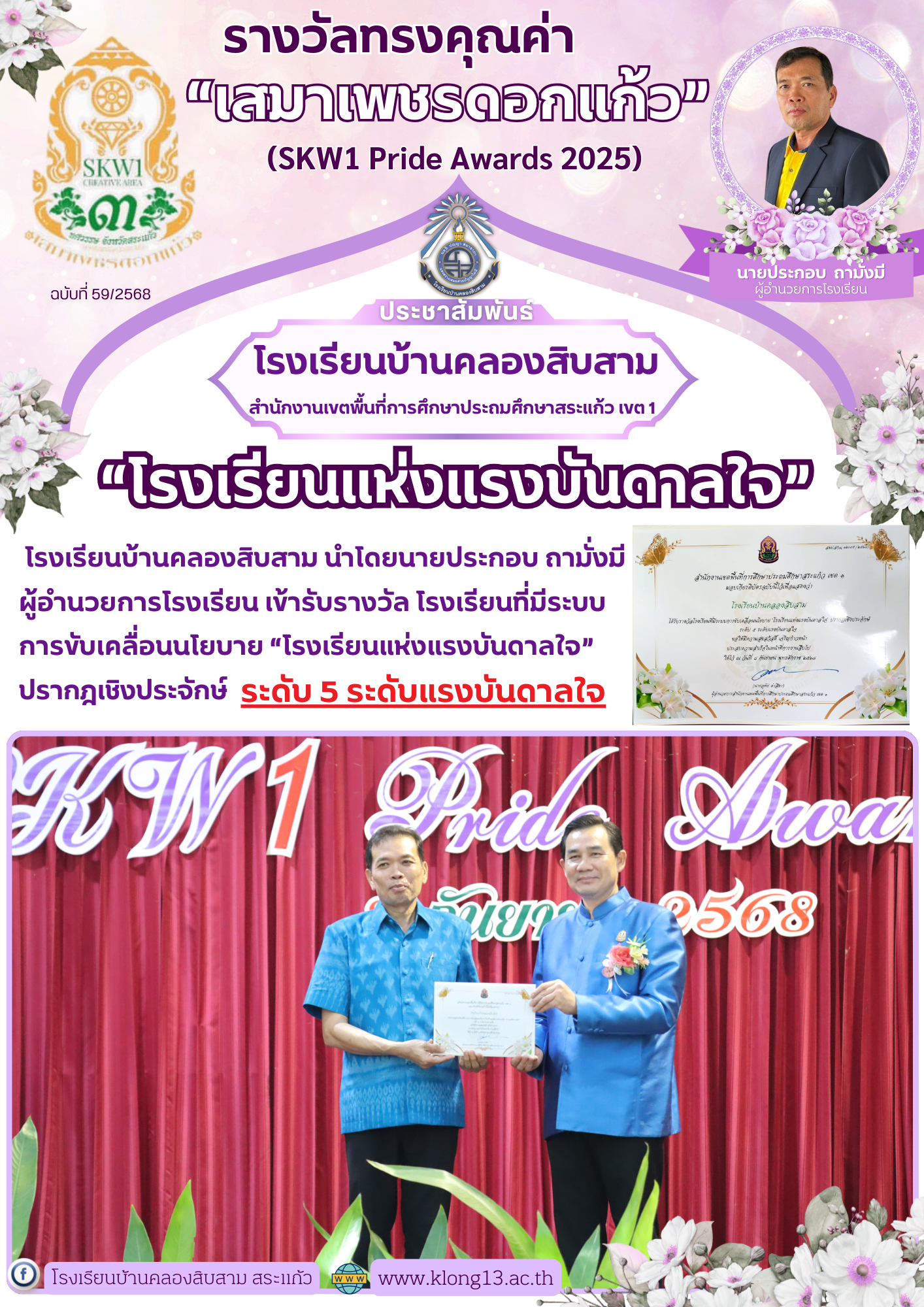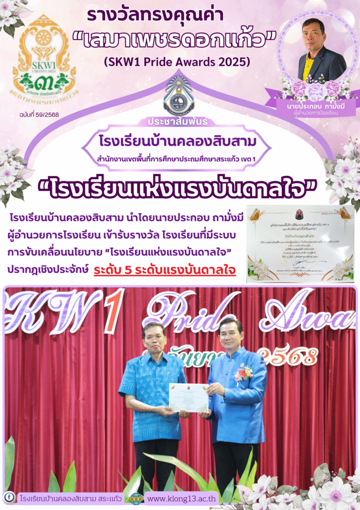 รางวัลโรงเรียนที่มีระบบการขับเคลื่อนนโยบาย “โรงเรียนแห่งแรงบันดาลใจ”